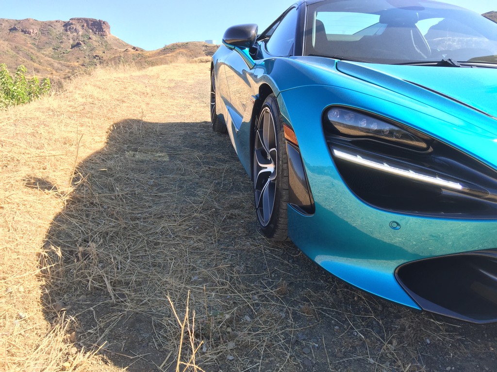 For those of you that are obsessed with specs, the McLaren 720S packs a twin turbo 4-Liter V8 generating 710 HPs and 568 lb-ft of torque. It can go north of 60 mph in 2.9s and a top speed of 212 mph. It features a seven speed dual clutch gearbox, adaptive damping, carbon ceramic rotors, electro-hydraulic steering, launch control, Comfort, Sport & Track modes, carbon fibre monocage chassis, steering wheel wrapped in alcantara, folding driver display and vehicle lift, you know, your typical supercar stuff. Never mind its sports exhaust is an additional $5,900, or the electrochromic roof that can be darken with a touch of a button for $9,100 more. This test car wears gorgeous Belize Blue paint ($5,720), rocks a Bowers & Wilkins stereo with 12 speakers ($4,420) plus the 720S Performance package (hood air intakes, rear fender air intakes, and door mirror casings in carbon fiber and engine bay ambient lighting) basically for the price of a brand new Nissan Versa. OK I will stop now.